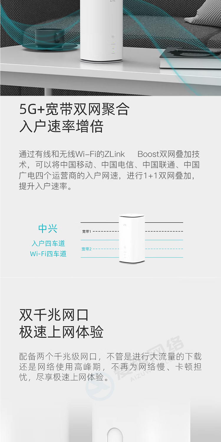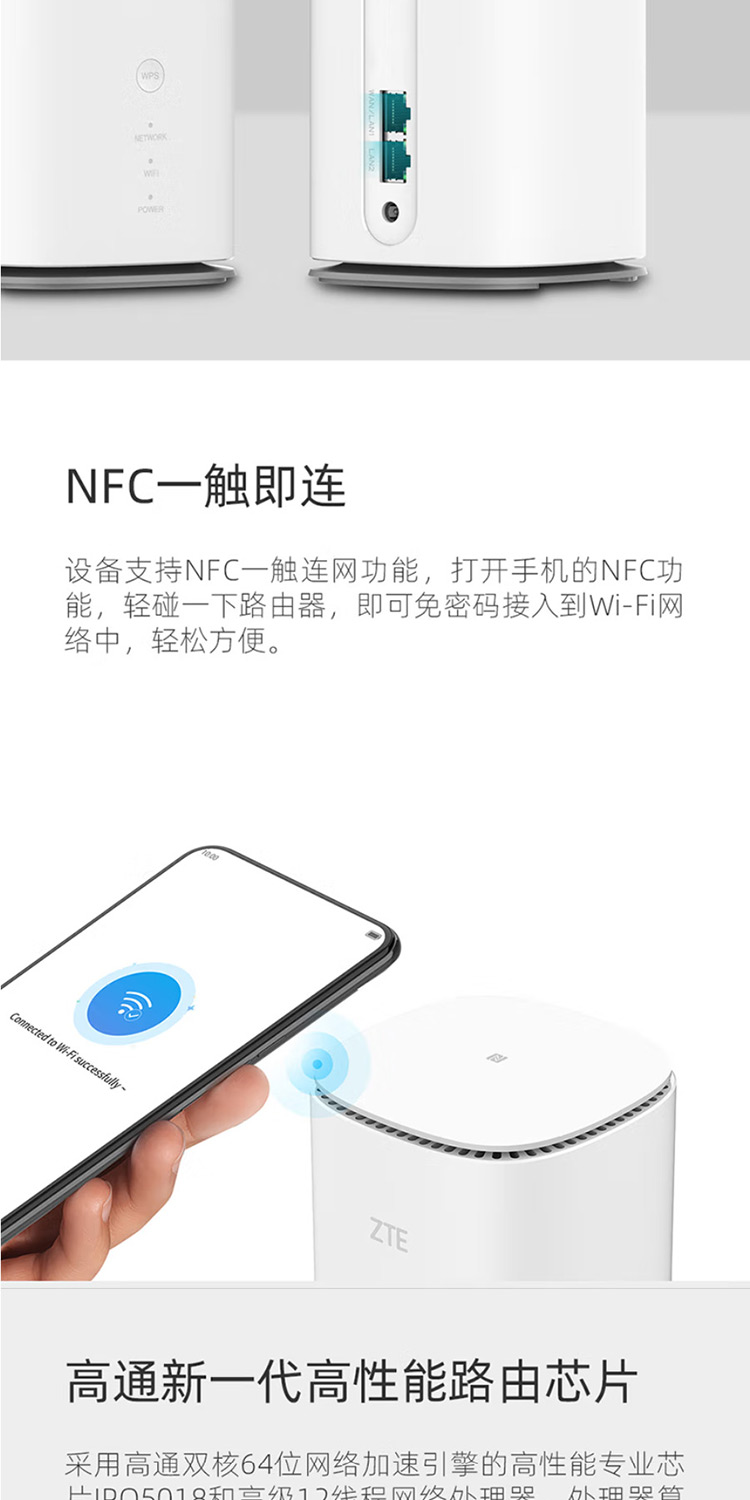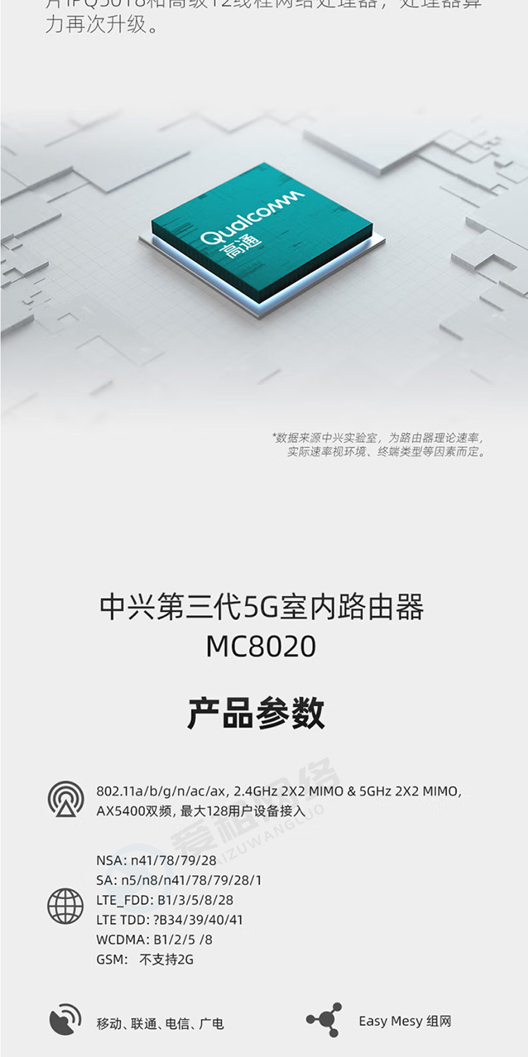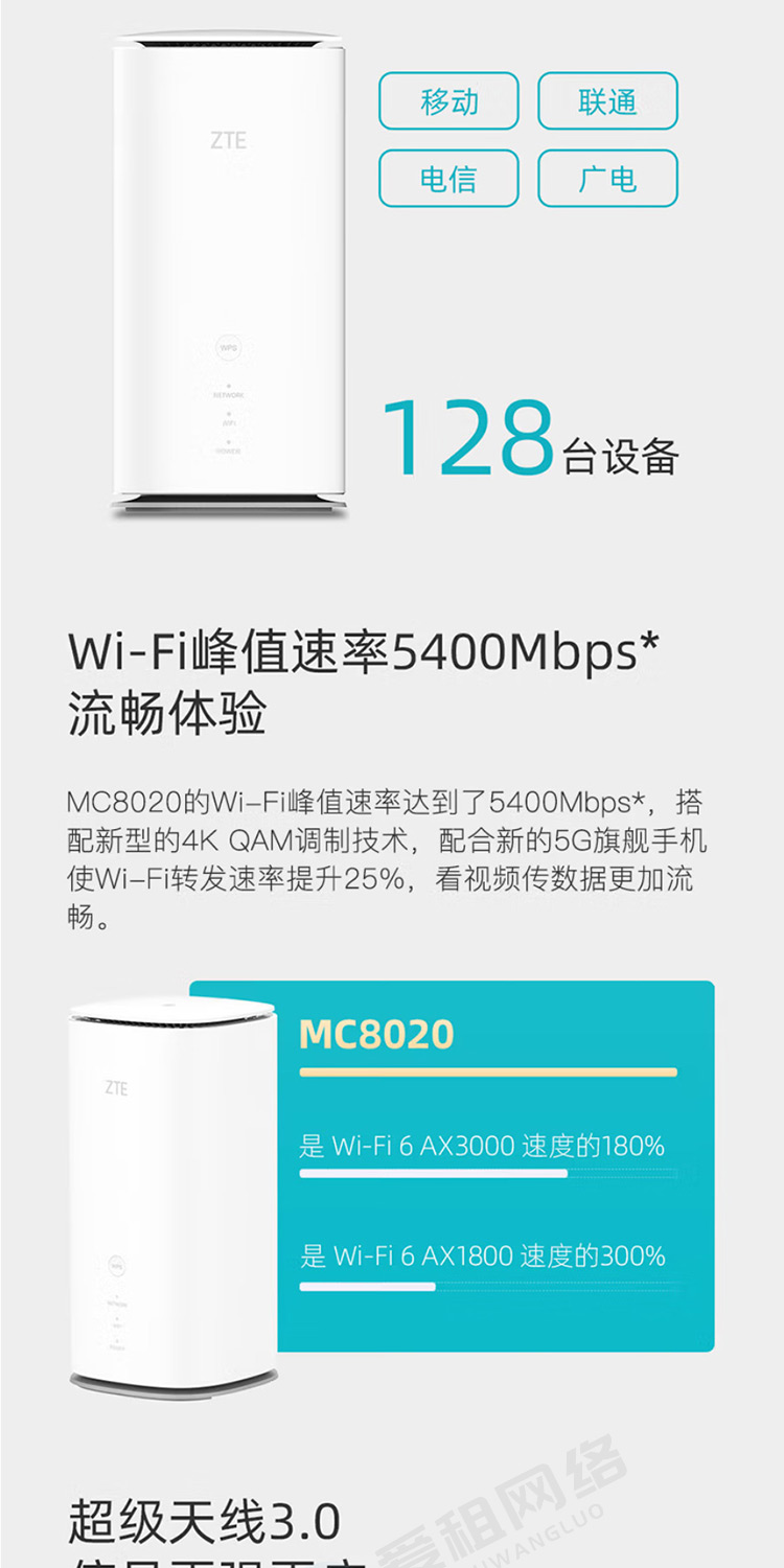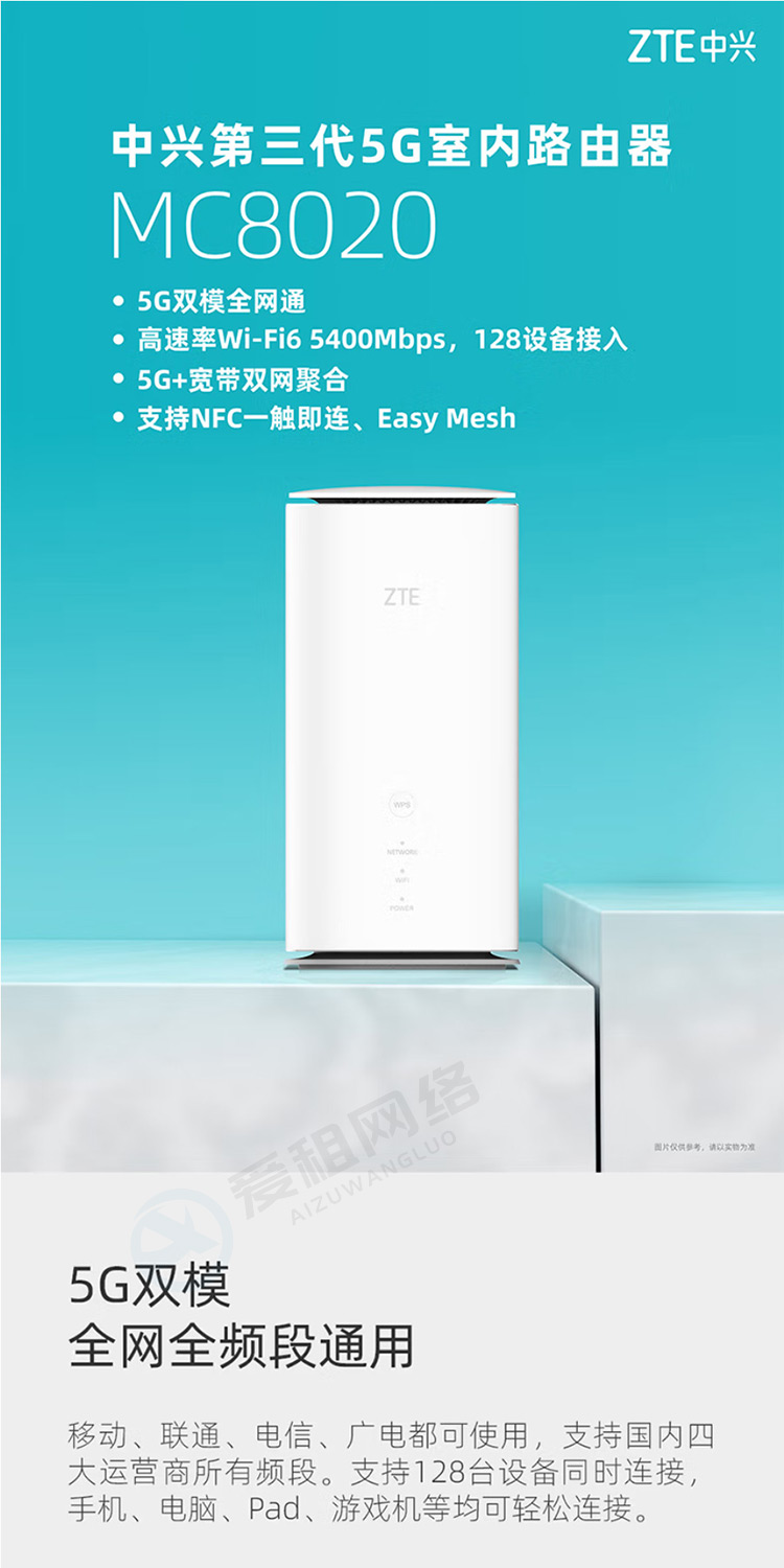 中兴(ZTE)5G cpe 3pro MC8020 AX5400 wifi6双频 无线移动千兆路由器
